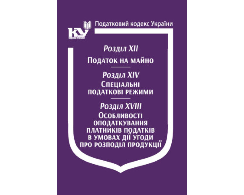 Податковий кодекс України: Розділ XII. Податок на майно. Розділ XIV. Спеціальні податкові режими. Розділ XVIII. Особливості оподаткування платників податків в умовах дії угоди про розподіл продукції