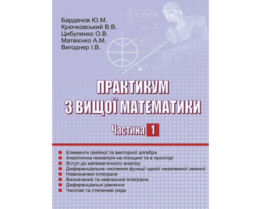 Практикум з вищої математики. Частина 1 Автор: Бардачов Ю.М., Крючковський В.В., Матвієнко А.М. Кількість сторінок: 390 Рік випуску: 2024