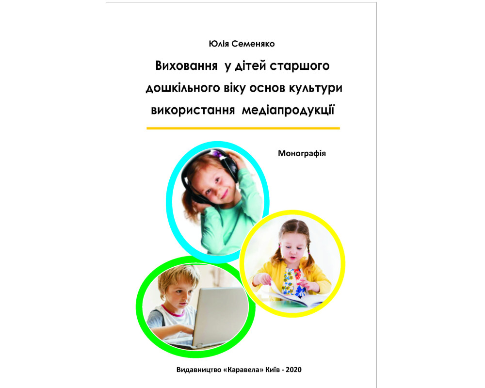 Виховання у дітей старшого дошкільного віку основ культури використання медіапродукції: монографія. Рек. ВР Семеняко Ю. Б. 2023 р. 320 с. т.бкл. . 2023 р