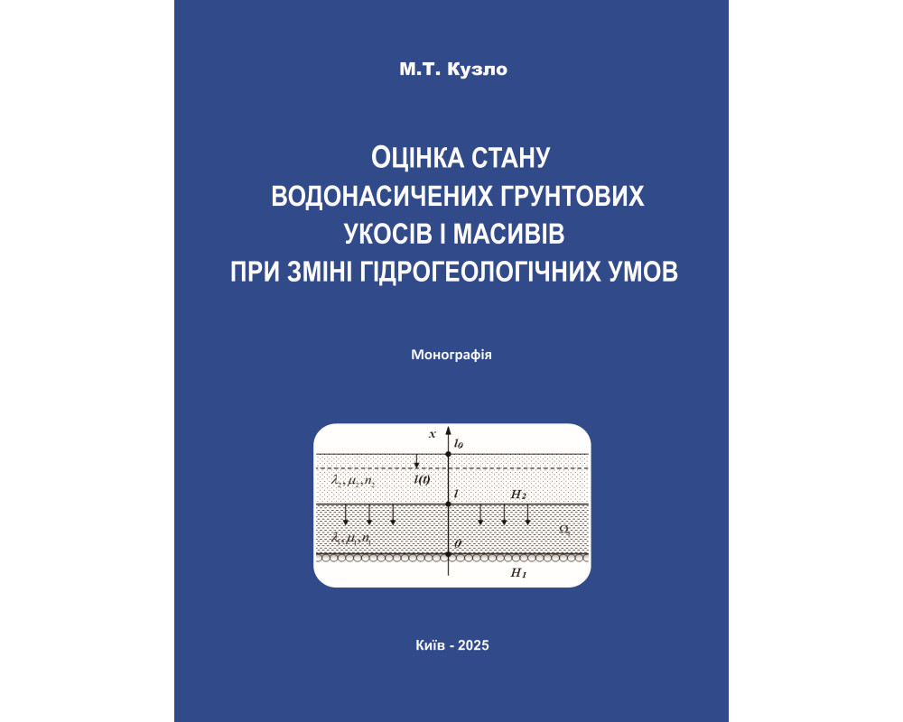 Оцінка стану водонасичених грунтових укосів і масивів при зміні гідрогеологічних умов: монографія. Кузло М. Т. Київ : Вид-во «Каравела», 2025. 194 с.